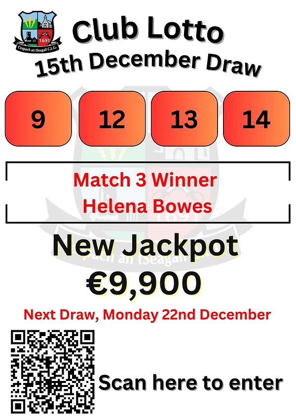 Fancy winning nearly €10,00 before Christmas. Join our lotto or gift someone the chance of winning- a perfect Christmas present.